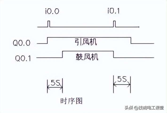 Sm0.1的特点在扫描的第一个周期接通,以后不接通。当按下在线控制面板上的i0.0f时即 i0.0接通,此时Q0.0接通输出,(即指示灯Q0.0亮)引风机启动,同时定时器T37接通并开始计时,当定时器计数到50即(即指示灯Q0.1亮)鼓风机启动。此时两台风机都运行。当按下在线控制面板上的I0.1f时,即接通I0.1此时鼓风机停止运行,(即指示灯Q0.1灭)同时定时器T38接通并开始计时,定时5s后引风机停止运行。(即指示灯Q0.0灭)。