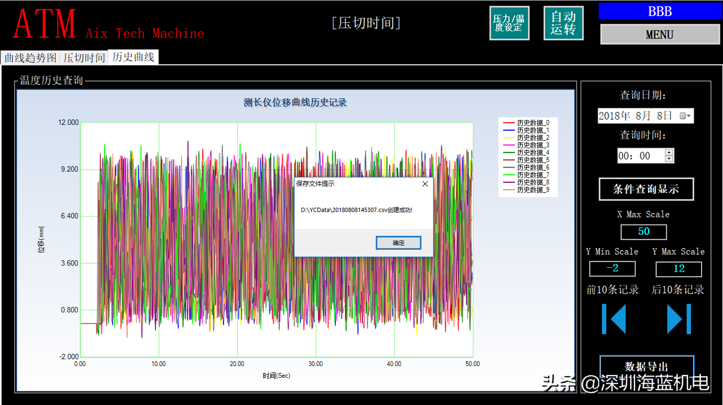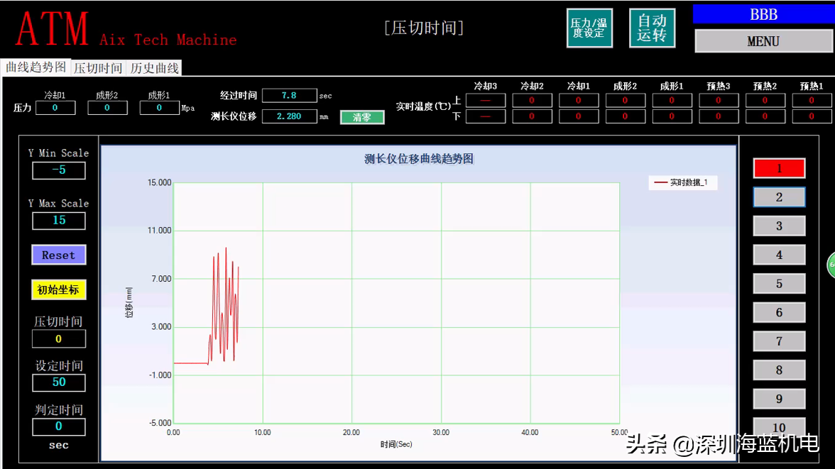 屏幕上显示各种信号变化(液压,水位,温度等)。