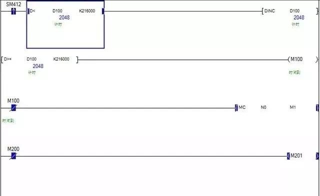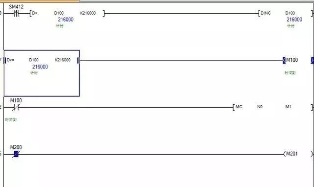 D100是计时的,当它的值小于216000时,M100不输出,下面的主控指令有效可以执行