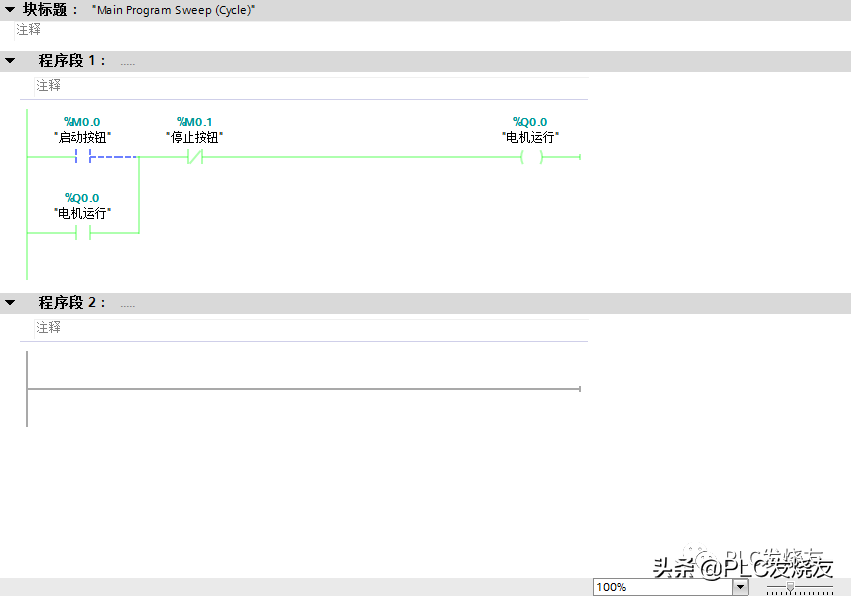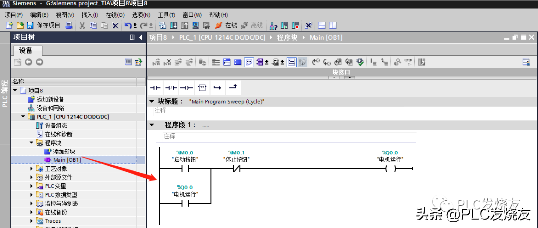 第四步:(在程序块0B1主程序里编写如下图启保停程序)