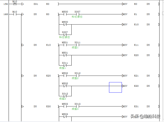 1、通过判断底下成型机的打开状态和需要供料状态执行那个送料。全部通过字地址的值来控制,这样避免同时多个在运行,而且对于这个机器来说,运行起来更方便。