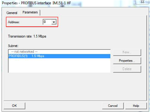 如设置为“8”,并选择PROFIBUS(1)网络,点击“OK”按钮。