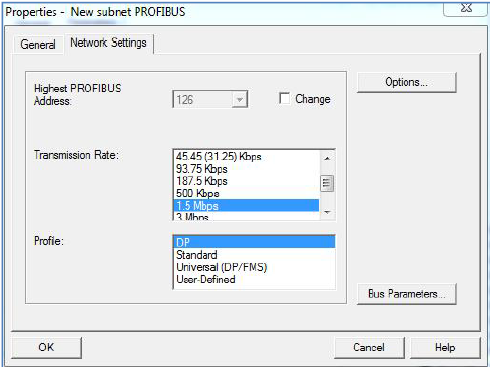 PROFIBUS 网络波特率设为1.5Mbps。