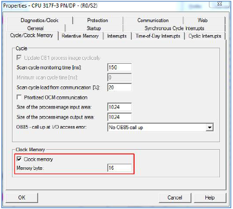 CPU 317F-2PN/DP 可以将 M 存储器的一个字节分配给时钟存储器。被组态为时钟存储器的字