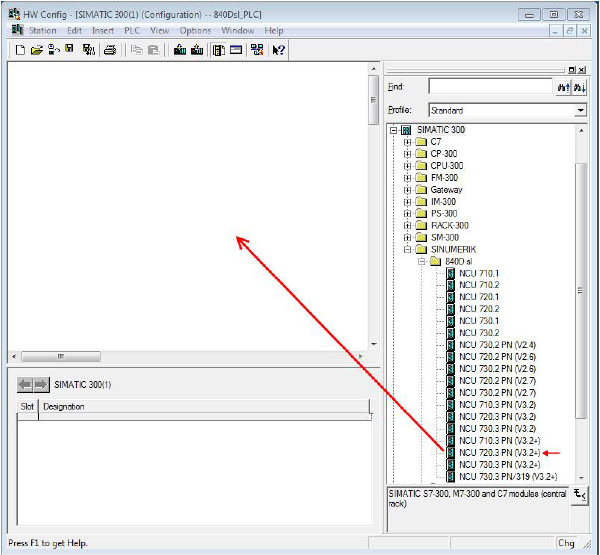 SINUMERIK 控制器,例如:用鼠标左键选中“NCU720.3 PN (V3.2+)”,并按住鼠标左键将它拖