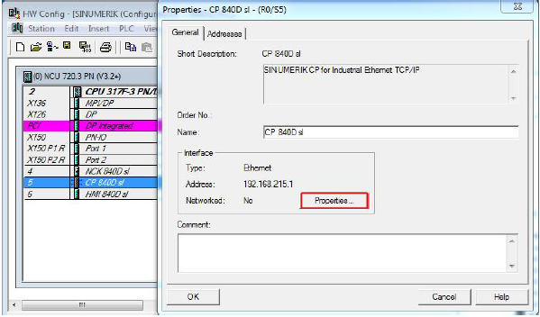 双击NCU 中的CP 840D sl,在弹出的对话框中,点击“Properties”按钮。