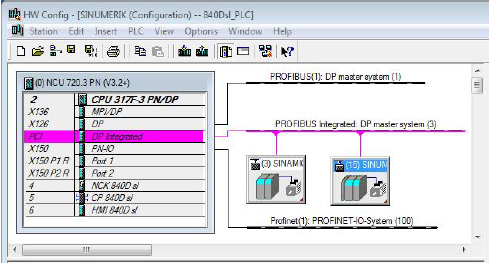 在硬件组态窗口,从菜单树“SIMATIC 300”→“SINUMERIK”→“840D sl”目录中选择并插入
