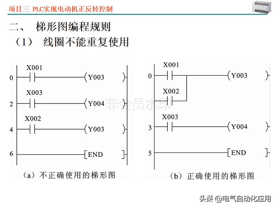 掌握了以上四个部分,一般就可以进行PLC的初步编程设计了,平时在空闲时间还需要继续学习PLC编程实例,通过实例学习,消化后成为自己的经验,同时也可以在实际编程中,借用别人更好的编程方法。在编程过程中,如果遇到问题,建议独立思考解决,查找相关资料和手册等。通过自己解决问题,下次遇到这个问题就可以轻松解决了。PLC编程是一个循序渐进的过程,通过实际的编程转化为自己的能力,可以快速掌握PLC编程。