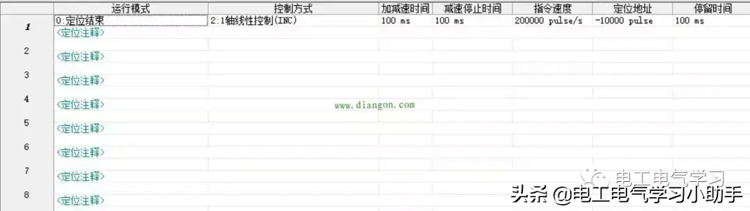 轴1定位数据:选择定位结束,INC就是相对位置控制,其他参数可以根据自己需要设置,这里可以默认。