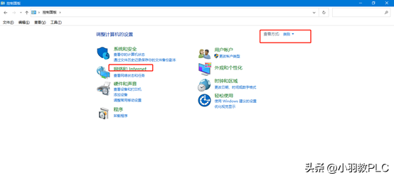 1、 打开控制面板,右上角选择类别后,单击网络和INTERNET。