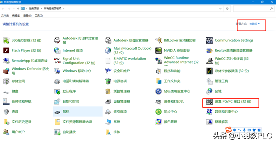 1、打开控制面板,选择右上角的大图标,单击下面的设置PGPC接口。