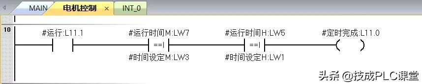 程序段10:运行的时候,运行的时间和设定的时间相等时,会输出定时完成信号,并断开程序段3的运行。