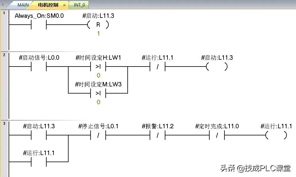 程序段2:启动的时候需要时间设定的小时或分钟大于0才可以启动,如果程序已经在运行了,则无法再触发启动.