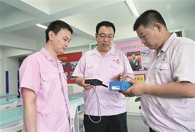 葛文军和创新工作室成员一起研究车间环境温湿度传感器国产化替代
