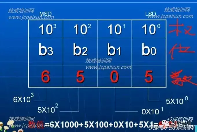 其中,6、5、0是它的数码,也叫数符。我们知道:十进制数有10个数码。0~9。我们把这10个数码叫做10进制数的基数。基数即表示了数制所包含数码的个数,同时也包含了数制的进位,即逢十进一。N进制必须有n个数码。