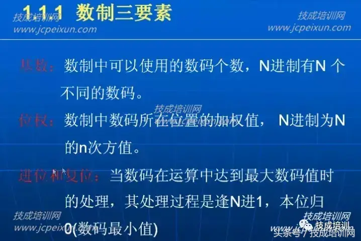 十进制计数内容已经包含了数制的三要素:基数、位权、复位和进位。下面我们就以十进制为例来讲解数制的三要素。