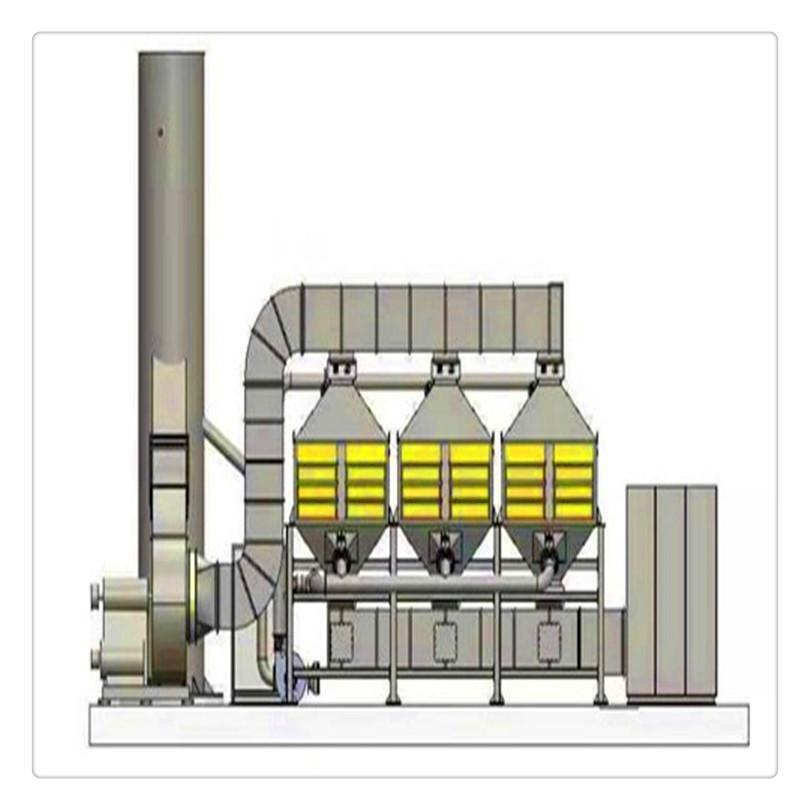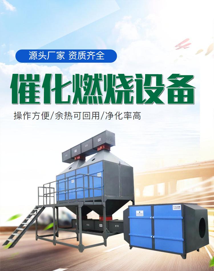 利用催化剂做中间体,使有机气体在较低的温度下,发生无焰燃烧,实现对有机物的完全氧化,分解氧化成水和二氧化碳等物质。催化燃烧设备电控制系统由PLC控制器、文本显示器、变频调速器、点火器、紫外线传感器、热电偶等电控设备以及风机,另外由零压阀调节燃气与空气的比例。催化燃烧设备比直接燃烧设备能耗少,安全,无二次污染。