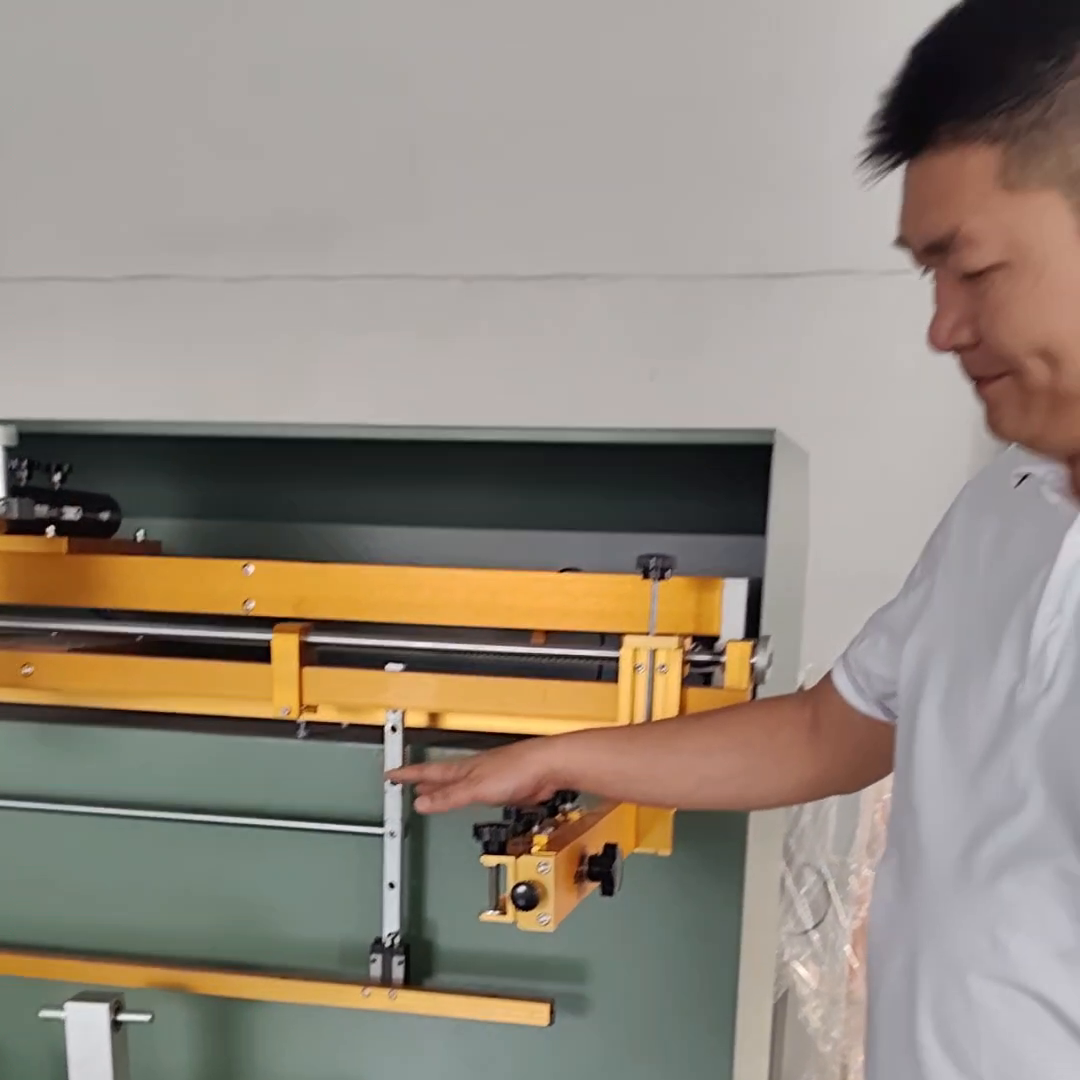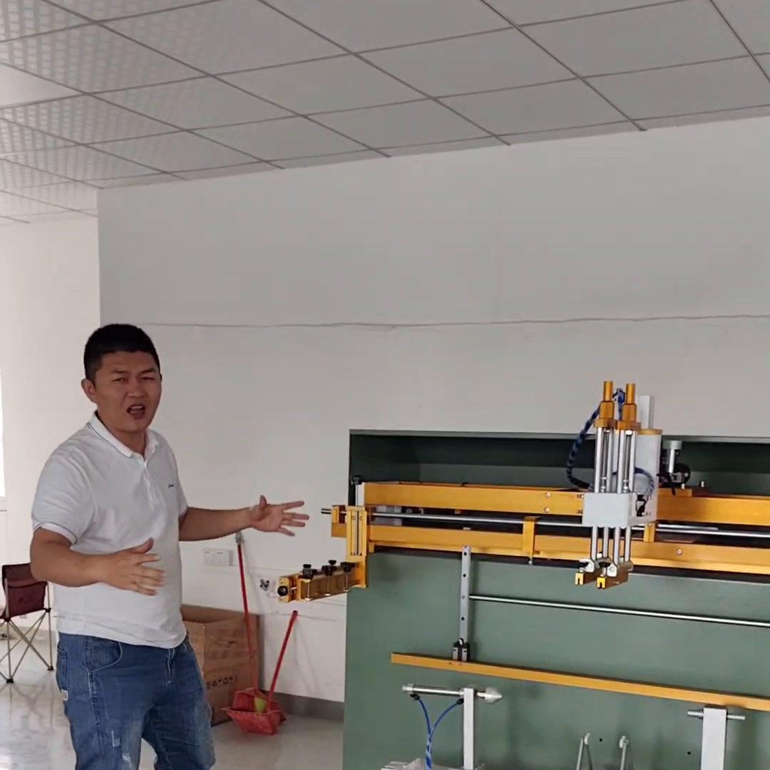 今天看一下,这个机器大不大?已经很大对不对?快起了我的快有加高了。我们这一款机形成是1米2的,采用伺服电机,也可以采用无感气缸。