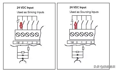 对于数字量输入电路来说,关键是构成电流回路。输入点可以分组接不同的电源,这些电源之间没有联系也可以。