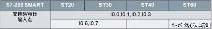 对于大多数输入来讲,都是24VDC输入,其中ST CPU的 I0.0-I0.3 支持 5-24V 输入,另外ST20/30 的I0.6、I0.7也支持5-24V输入。如下表所示: