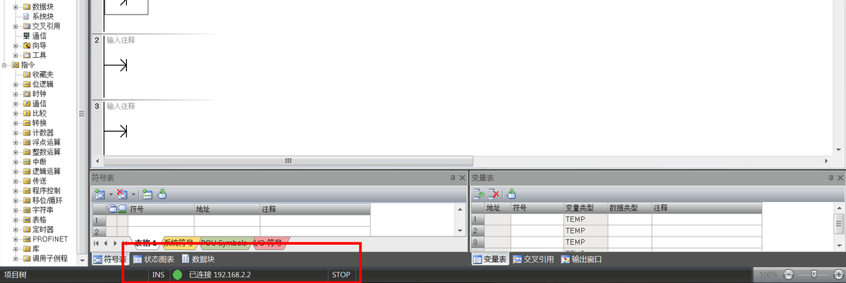 3.单击确定按钮,自此编程计算机通过以太网正式连接到PLC,并在编程软件下方以绿色圆点显示联网正常。