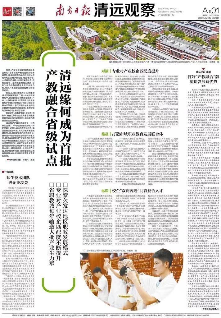 ——打造产教融合创新平台和实训基地,培育具有示范作用、特色鲜明的产教融合型企业,服务地方产教融合城市建设和区域产业转型升级,立足清远,面向大湾区,形成职业教育产教融合的清远模式。