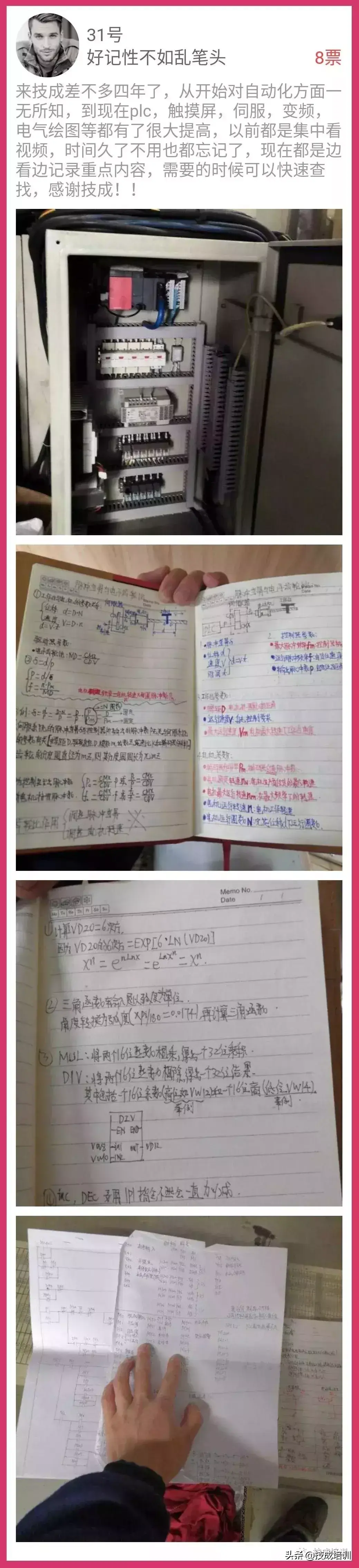有的人看了这些笔记,很佩服。有的人看了笔记嘲讽说:并没有什么用,PLC是要靠实操的,又不是让你来写书的。其实大家多多少少都念过书,做笔记是学习的一种方式,既能记录课程的精彩有用内容,又能做日后的复习回顾用,是很明智的一种办法。只是有的人难免摘不到葡萄说葡萄酸。