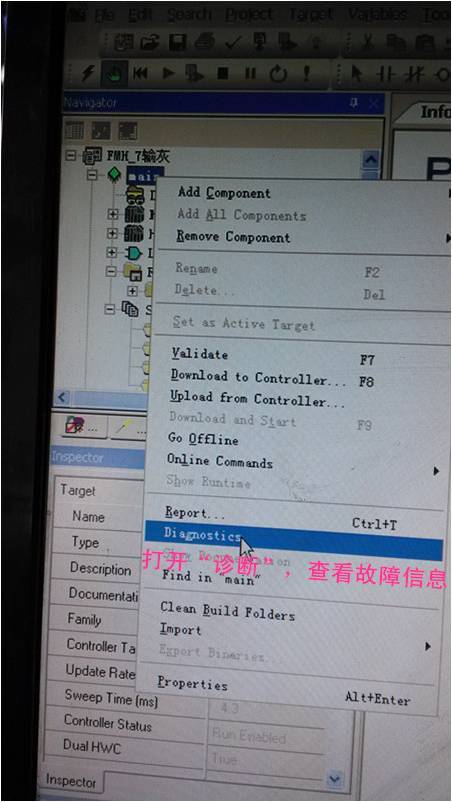 右键点击目录里的main→Diagnostics,进入诊断画面。