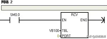SMB94定义接收缓冲区大小,此处定义为最大255字节。(注:接收缓冲区是用来存放接收到的数据的区域,最大255字节,大家可以根据通讯情况自由定义。)