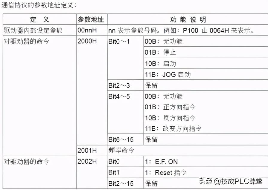 上表中的2102H频率指令(F)( 小数2位)中,小数2位的含义是指:频率范围是00.00 -50.00Hz, 频率是一个实数,但是一个实数占用32位,Modbus通信的保持寄存器区每次通信的单位是字,并不能直接传输小数。因此在通信过程中我们读到的频率信息是放在两个字里边的,第一个字中存储的是一个 4位十进制数,例如0612,但是我们都知道,频率并没有0612Hz,我们还要读取第二个字中的值,第二个字中的值表示小数点的位数,例如2,表示小数的位数为2位,,因此当前的运行频率表示为06.12Hz,这才是我们真正读到的频率值。