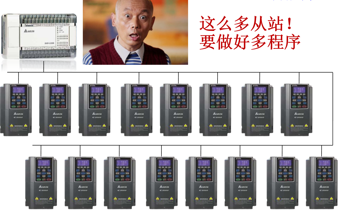 这么多从站,如果使用PLC的轮询功能需要做好多程序,真是令人头大!