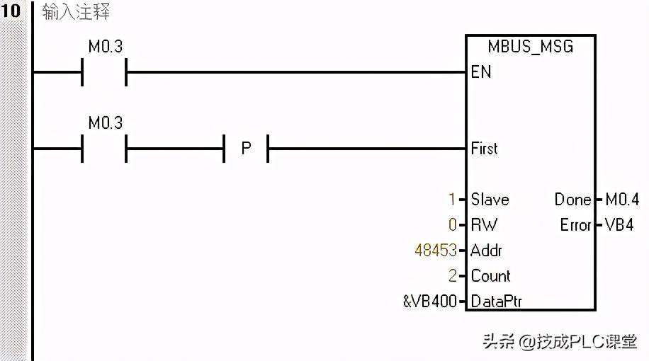 第十步:(M0.3接通读取变频器电流指令,读取变频器电流值存放在VW400当中,读取完成后M0.4接通)