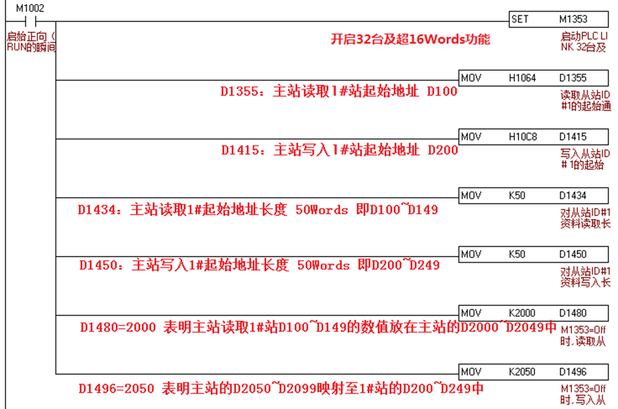 M1353 :链接数量32台及超16Words读写 ON:开 OFF:关
