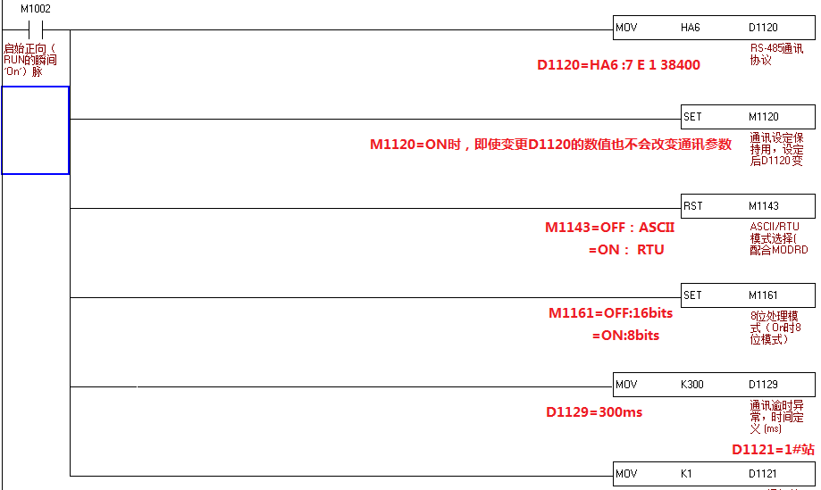 M1143( M1320)通讯资料格式设定 OFF:ASCII ON:RTU