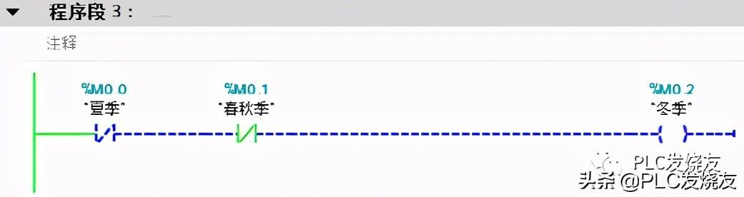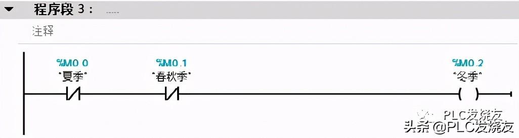 第三步: (在程序段3中,如果是其余月份(冬季),则M0.2线圈通电。)