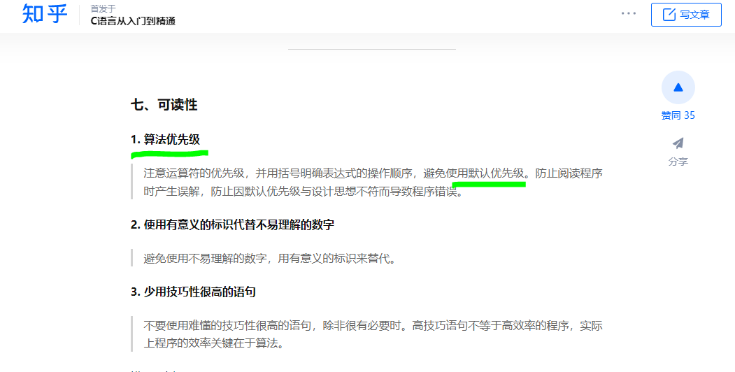 然而,在实际的工作中, 通常很少有人会依赖于优先级进行编程。 反而在一些编程规范中, 会明确强调程序的易读性,禁止依靠优先级实现程序逻辑。