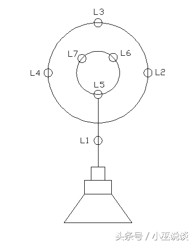 1.按下启动按钮L1灯亮,2秒后L2灯亮,2秒后L3灯亮,2秒后L4灯亮,2秒后L5、L6、L7三灯同时亮,2秒后全部灯熄灭,2秒L2、L3、L4三灯亮,2秒后L2、L3、L4灯灭,L5、L6、L7三灯闪烁,4秒后全部灯熄灭,如此循环3次系统停止。