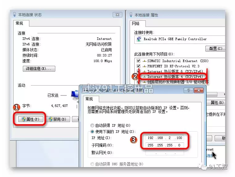 首先将编程电脑、PLC、KUKA设置成统一网段,因KUKA的底层设置原因,最好不更改机器人IP地址