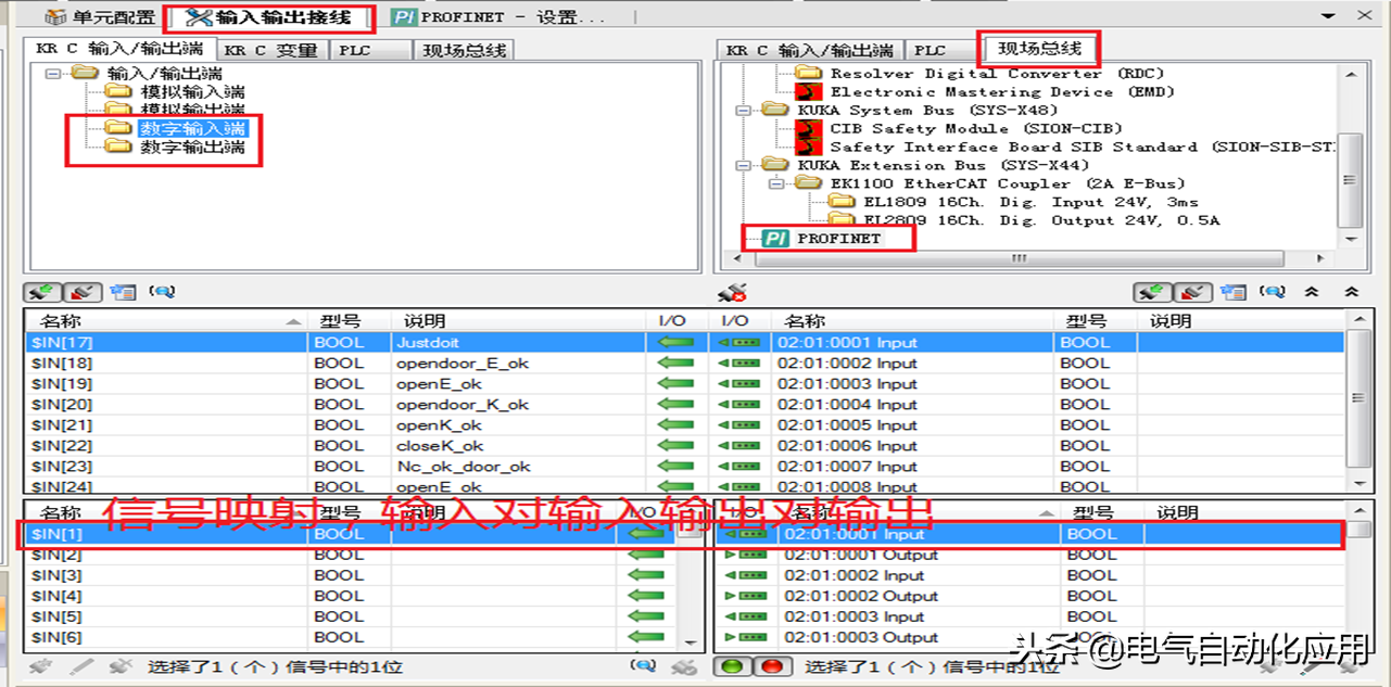 机器人侧即为映射时的IN(..),PLC侧则是在博图里对KUKA设备设置时的IO地址