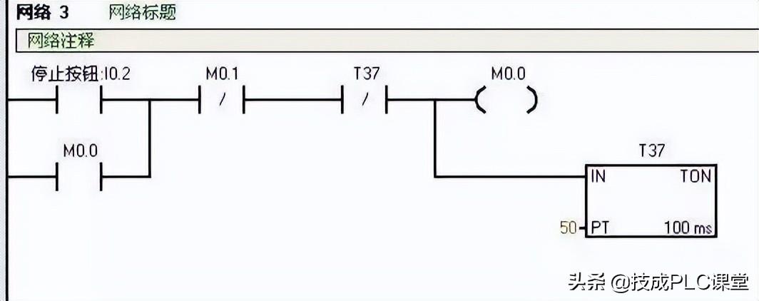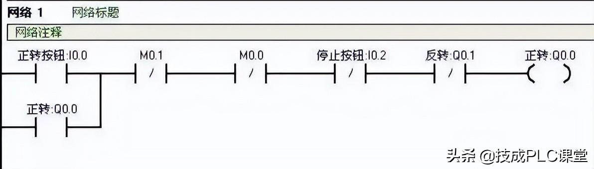 题意(2) 要求按停止按钮5秒后才能改变电机方向,所以这里需设置一个标志位,这里用M0.0。