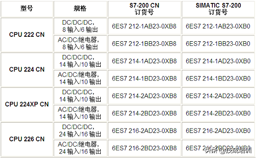 各型号 CPU订货号见表 1.2。注意:S7-200 CN产品里不包含 CPU 221。