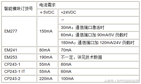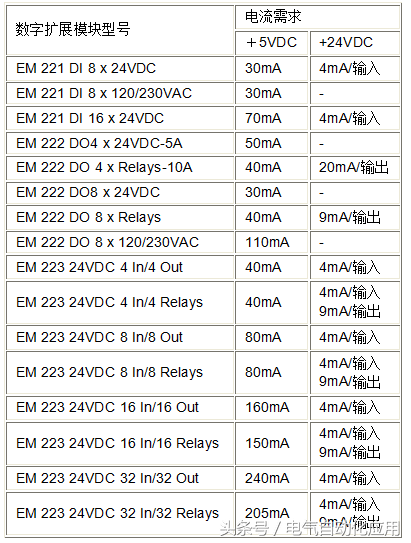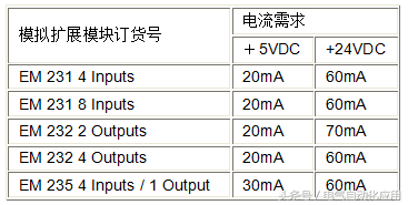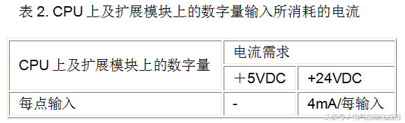 表2. CPU上及扩展模块上的数字量输入所消耗的电流