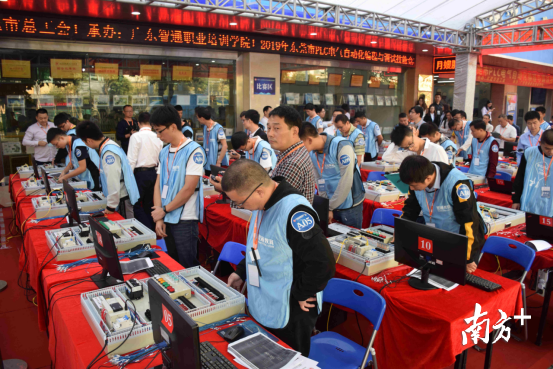 为顺应智能制造人才发展战略,今天由东莞市总工会主办,广东智通职业培训学院承办的“2019年东莞市PLC电气自动化编程与调试技能竞赛”成功举办,此次大赛吸引了一百多名来自自动化行业的技能高手同台竞技。