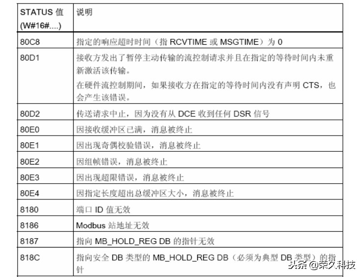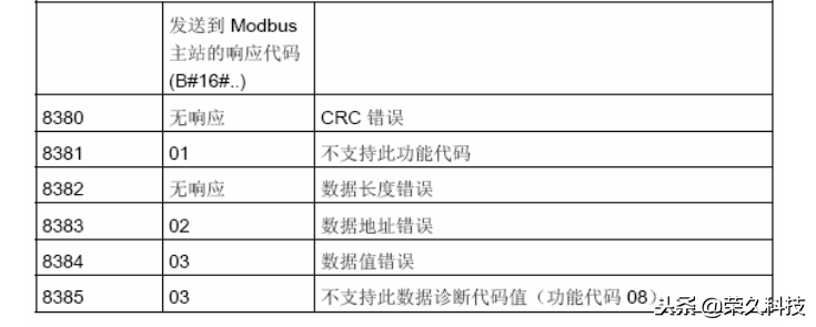 MB_SLAVE 进行MODBUS RTU通信的状态代码