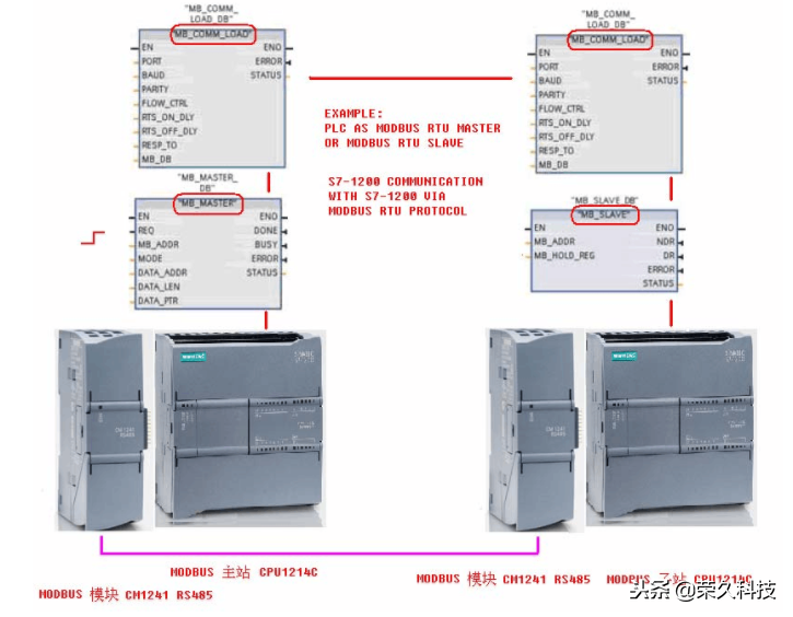 S7-1200的MODBUS RTU通信的基本原理是: