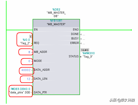 MB_MASTER功能块的编程如下图所示。