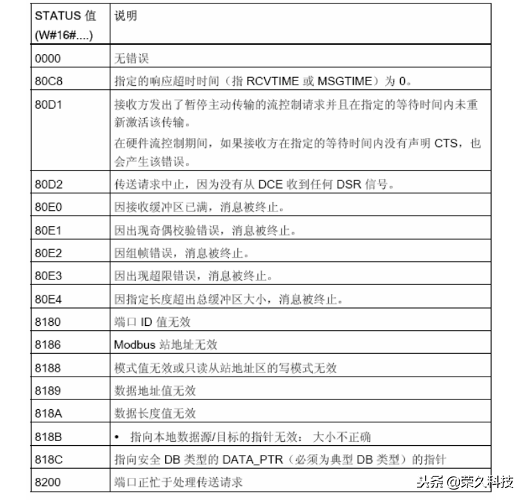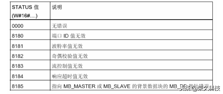 表7: MB_MASTER 进行MODBUS RTU通信的状态代码