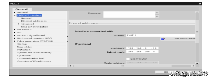 在CPU的属性中,设置以太网的IP地址,建立PG与PLC的连接,如下图所示。