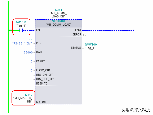 MB_COMM_LOAD功能块的编程如下图所示。