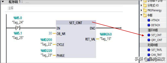 1. 通过在程序中调用功能块重新设置循环时间(优先于组态设置循环中断)设置循环中断参数指令